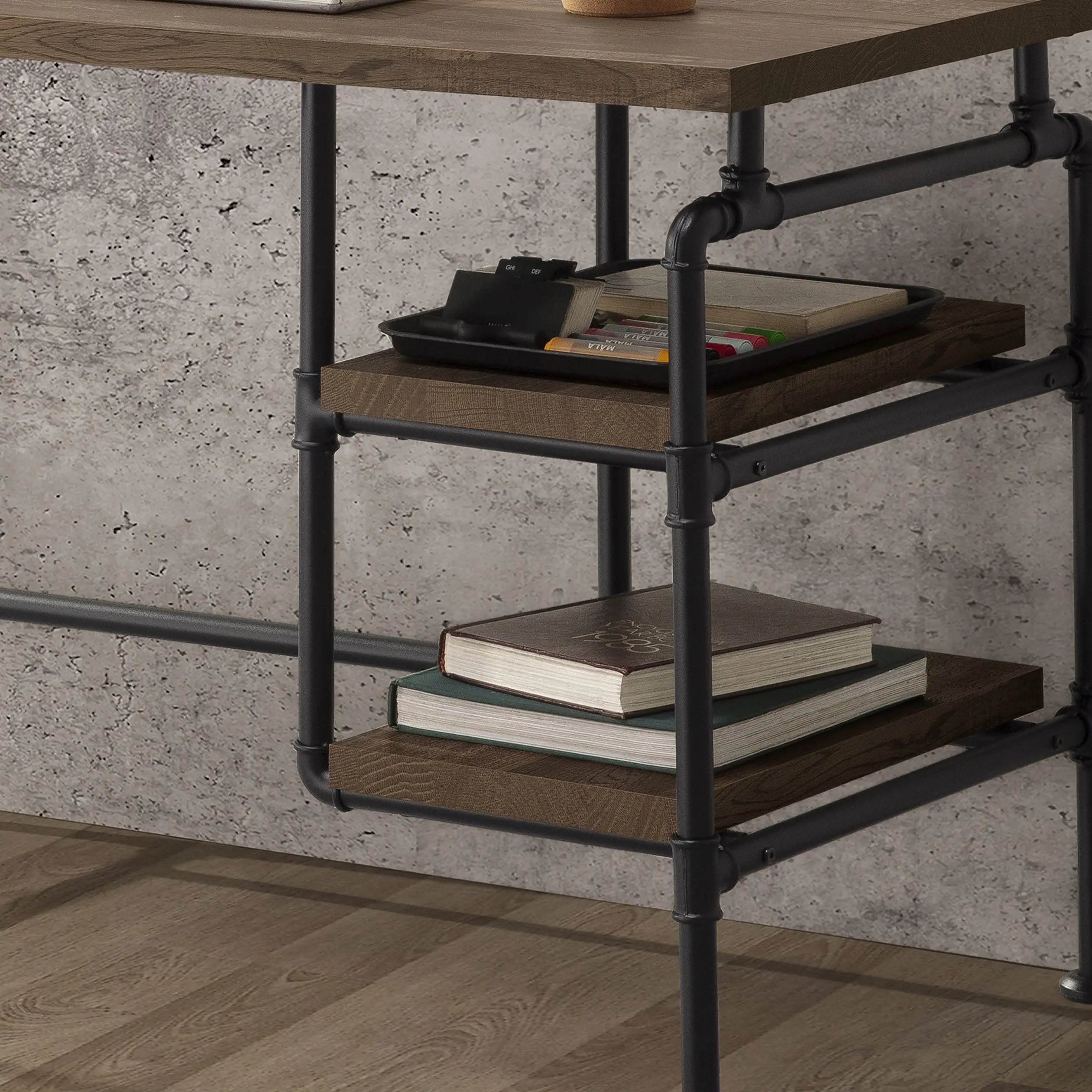 שולחן כתיבה מפנק בצבע אגוז כפרי עם רגלי מתכת