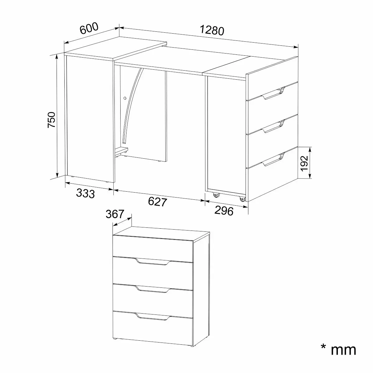 קונסולת שולחן עבודה מתקפל, מתאים למגוון שימושים כולל 3 מגירות