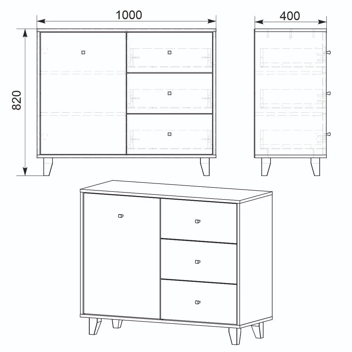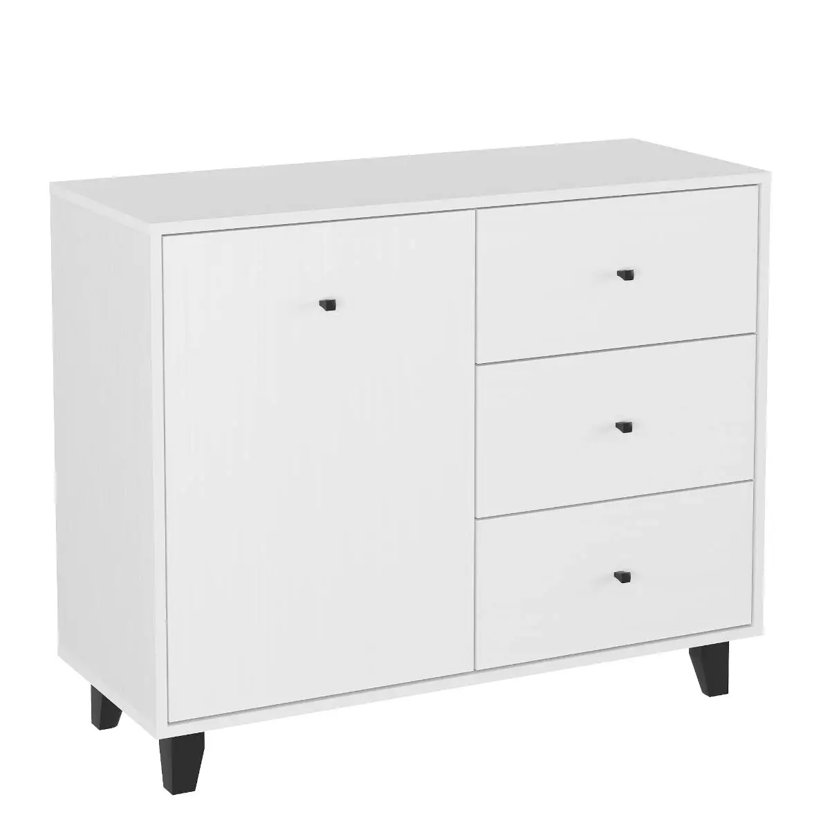 שידת מגירות איכותית בצבע לבן הכוללת 3 מגירות ודלת לאחסון מריבי.